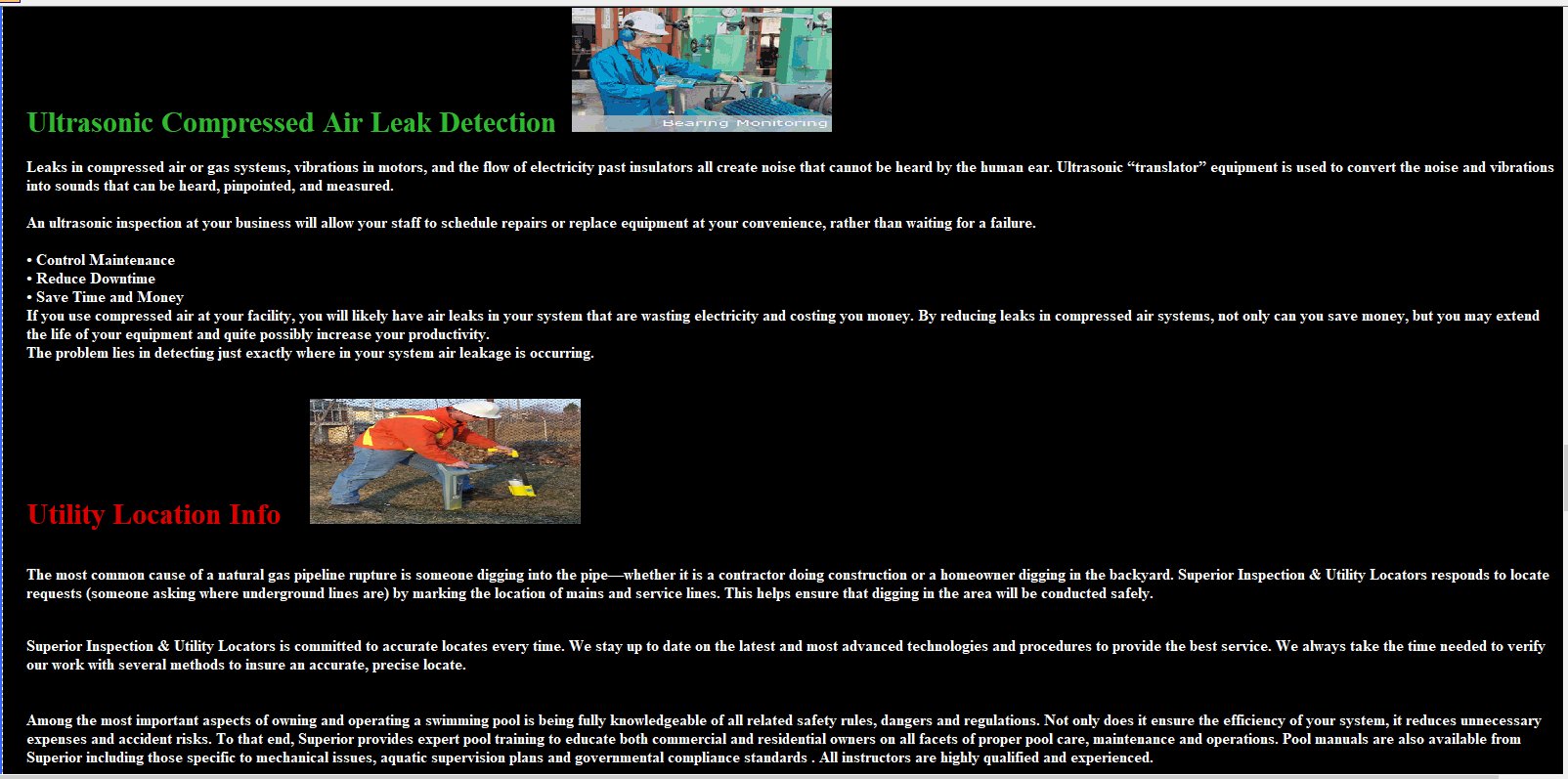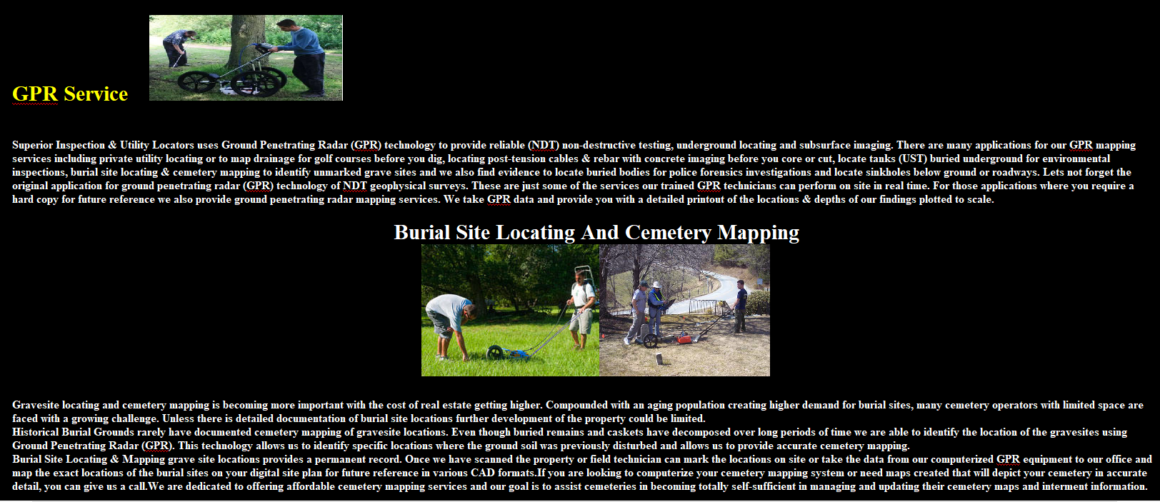 At Superior Leak Detection we perform Water GPR Surveys, Pipeline Leak Testing, Gas GPR Surveys, Underground GPR Surveys, IR Thermal Imaging, and Utility Line Location.  We service six counties; Orange County, Riverside County, Los Angeles County, San Bernardino County Ventura and San Diego County.